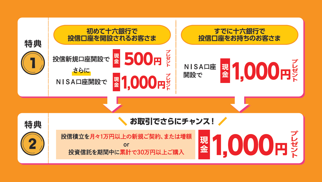 - 「じゅうろくアプリリリース記念NISAスタートキャンペーン」と重複してプレゼントを提供できません。
