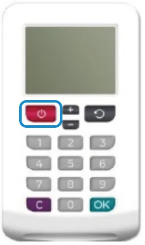 - 液晶に何も表示されていない状態で、最上段左にある電源ボタンを押します。