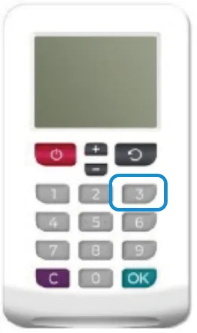 設定メニューで4のボタンを押し、ファームウェアのバージョンが流れた後に10桁のシリアルナンバーが流れることを確認。- 端末裏の下部に貼られているシールにも10桁のシリアルナンバーが記載されているため、そちらでも確認可能です。