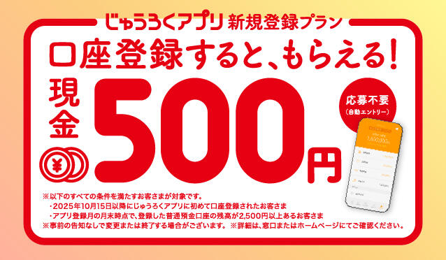 ①じゅうろくアプリへの初めての口座登録を2025年10月15日以降に実施