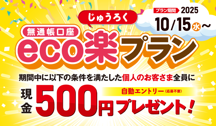 - 2025年10月14日(火)以前に無通帳口座「eco楽」となっている口座は対象外です。