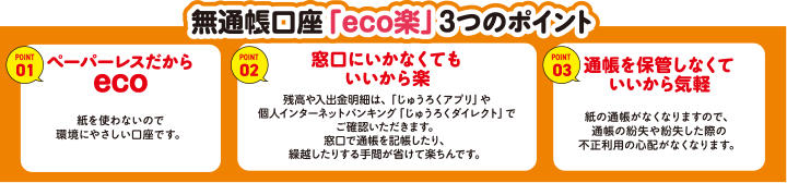 無通帳口座「eco楽」の新規開設・切替え時のご留意事項